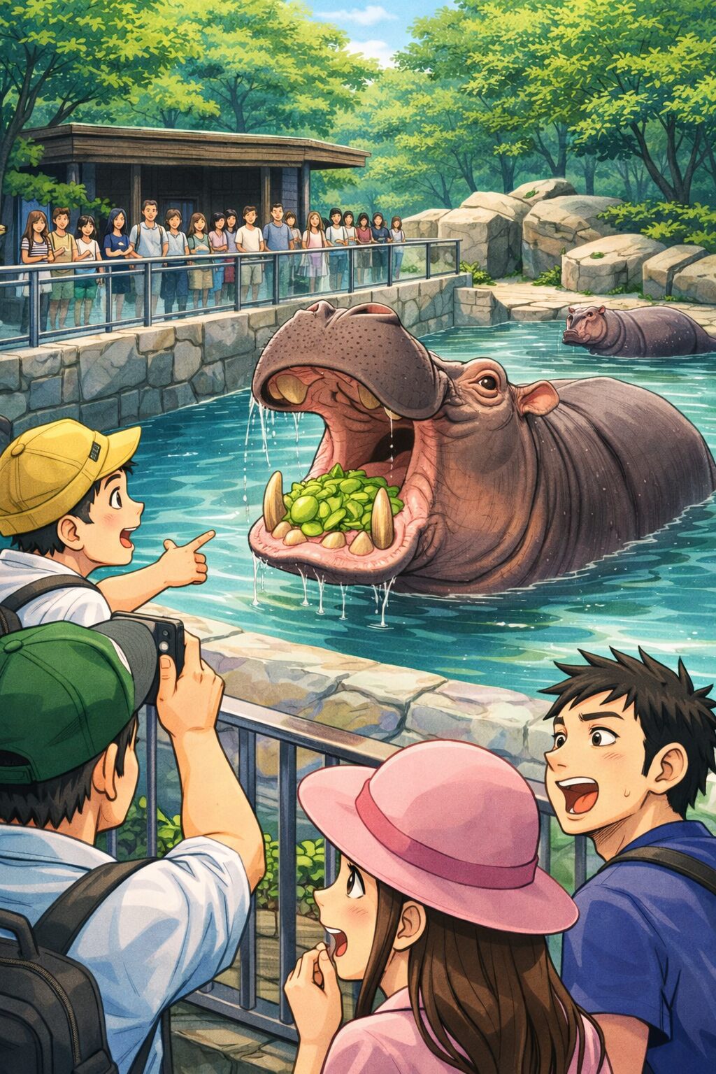 「アフリカの動物」エリア、水中から巨大な岩のような背中が突き出しています。カバです。ゆっくりと陸に上がってくると、その圧倒的な「重量」に驚かされます。数トンに及ぶ筋肉と脂肪の塊、それを支える短い足。大きな口を開けて欠伸をするたび、湿った口腔の熱気と、重厚な身体が放つ生命の匂いが漂います。彼らは水の浮力から解放されるやいなや、重力という地上の理(ことわり)をその身一つで引き受けているように見えます。
