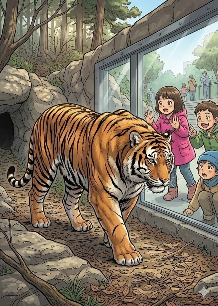 第3章:トラ ―― 力の神学(力は悪か) ① 導入:観察 「極地・捕食者の森」のエリア、強化ガラスの向こう側をアムールトラが音もなく行き来しています。驚くべきは、その歩みの静謐さです。数百キロの巨体を支える強靭な筋肉が、しなやかな毛皮の下で波打ち... -
